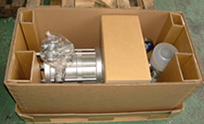 トライオール梱包は高い強度を保ちながらも木箱に比べて重量を1/3~1/4程度に抑えることができます。